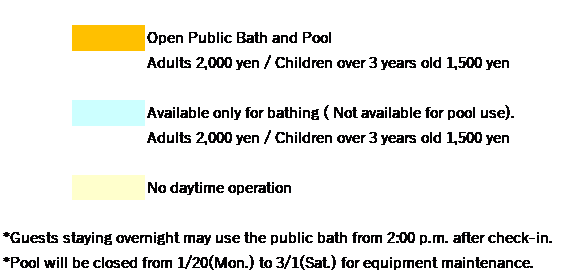 *Guests staying overnight may use the public bath from 14:00 after check-in.