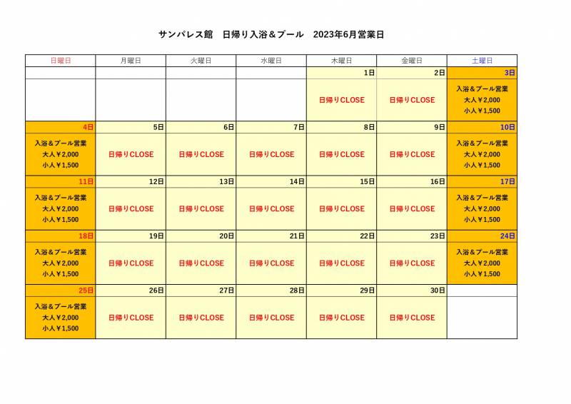 【6月】日帰り入浴、日帰りプール営業についてご案内